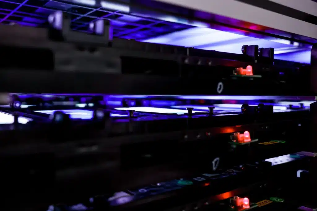 Sau khi lắp ráp xong, các cánh tay robot sẽ chuyển bo mạch chủ sang thiết bị kiểm tra để tiến hành các bài kiểm tra đa kênh trên bo mạch chủ để đảm bảo chức năng và hiệu suất đáp ứng đúng thông số kỹ thuật. Hệ thống có khả năng kiểm tra đồng thời tới 40 bo mạch chủ cùng lúc.
