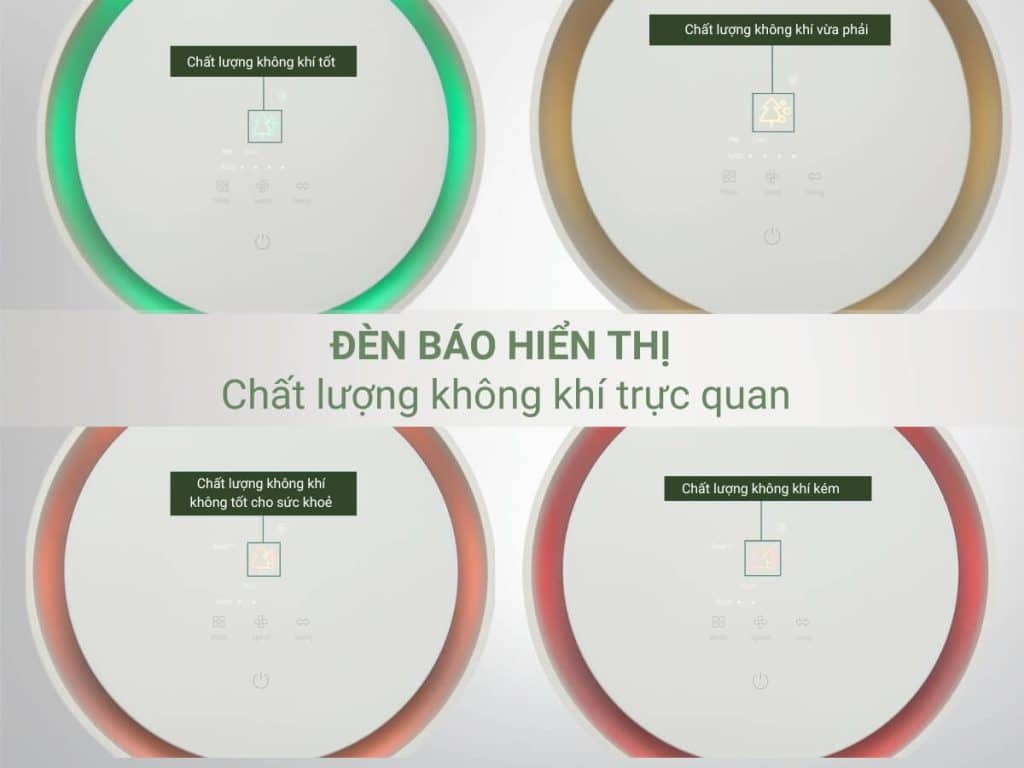 Máy có cảm biến chất lượng không khí thông minh, giúp theo dõi tình trạng không khí theo thời gian thực. Khi cảm biến phát hiện không khí ô nhiễm, đèn LED sẽ trở thành màu đỏ, cảnh báo bạn nên chú ý đến tình trạng không khí xung quanh.