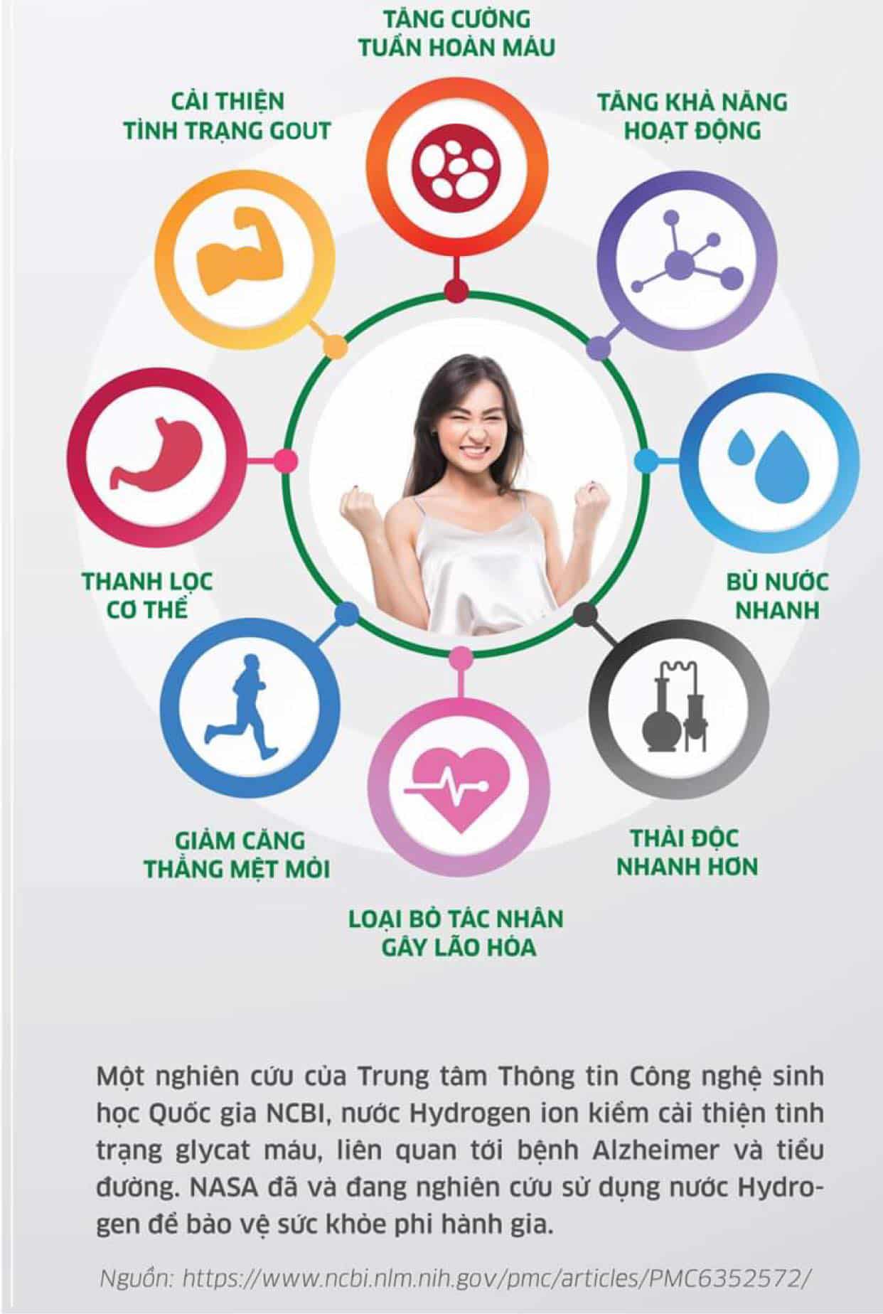 Nước được lọc qua máy không chỉ an toàn mà còn hỗ trợ cải thiện hệ tiêu hóa, tăng cường sức đề kháng. Đặc biệt, nước Hydrogen được xem là loại nước giúp ngăn chặn lão hóa, nâng cao sức khỏe tổng thể. Hơn nữa, việc sử dụng máy lọc nước còn giúp tiết kiệm chi phí mua nước đóng bình hàng tháng.