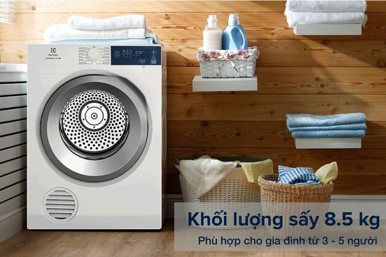 - Khối lượng sấy tối đa: 8 kg