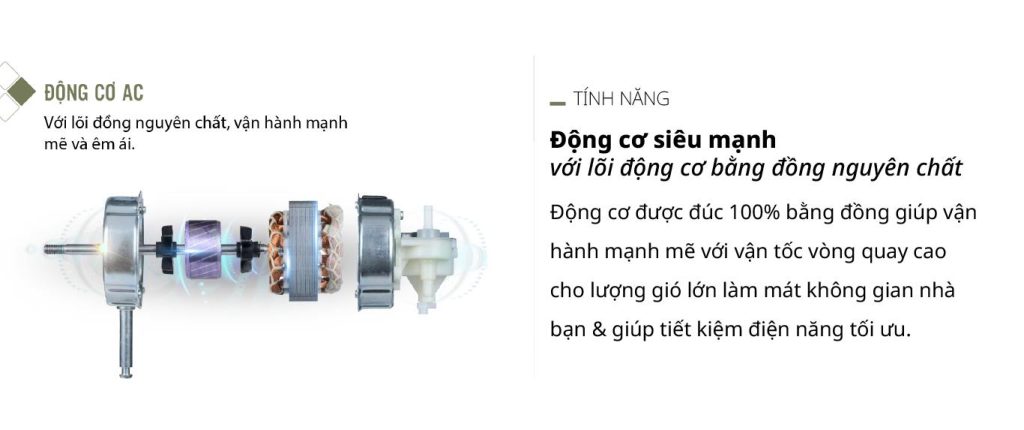 - Dùng động cơ AC có thể có hiệu suất kém hơn so với động cơ DC / BLDC trong việc tiết kiệm điện ở mức dùng nhẹ nhàng.
