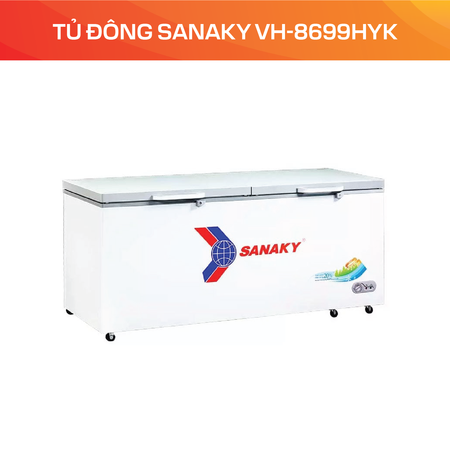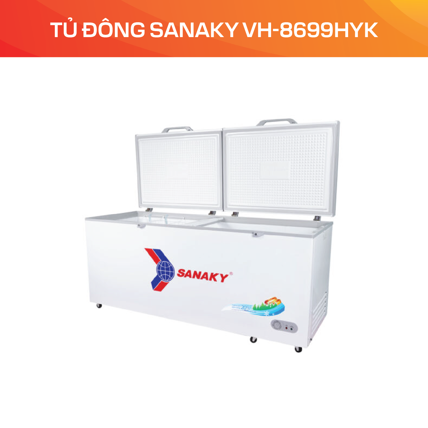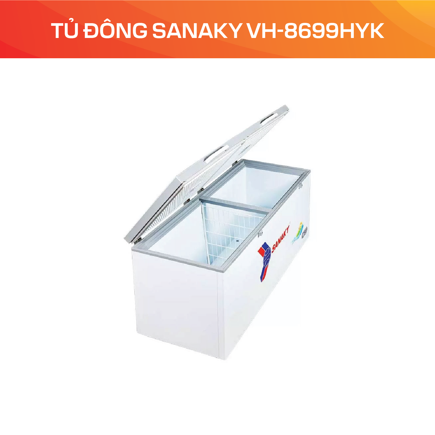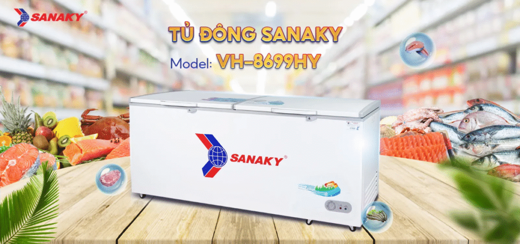 Tủ đông Sanaky VH-8699HYK chính hãng giá rẻ tại Hà Nội, TP.HCM. Hotline đặt hàng. Tủ Tủ đông Sanaky VH-8699HYK: 0988 009926, 0984 3112 30. Giao hàng toàn quốc. Tủ Đông Sanaky 761 Lít VH-8699HYK là một thiết bị làm lạnh, chuyên dùng để bảo quản thực phẩm ở nhiệt độ thấp, thường dưới −18 °C, nhằm giữ thực phẩm trong trạng thái đông cứng, hạn chế vi khuẩn phát triển, duy trì chất lượng, mùi vị và giá trị dinh dưỡng lâu dài.