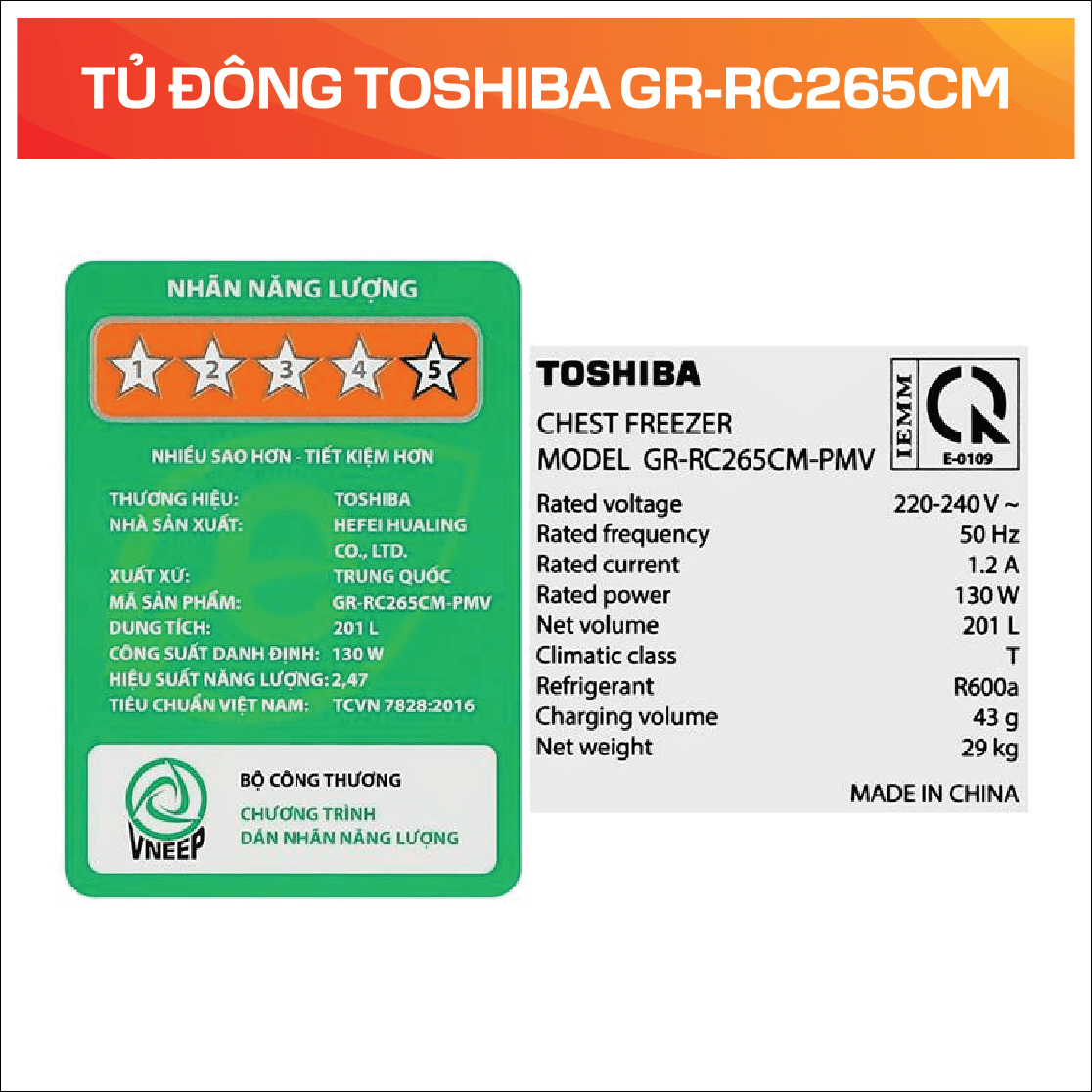 TỦ ĐÔNG TOSHIBA GR-RC265CM