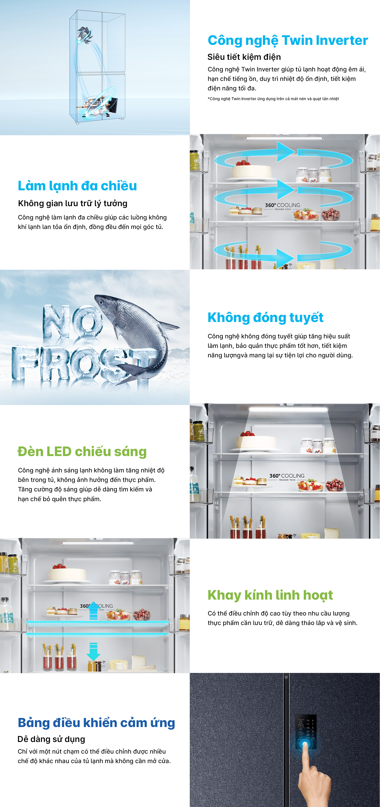 Làm lạnh gián tiếp + luồng khí đa chiều đảm bảo phân phối lạnh đều