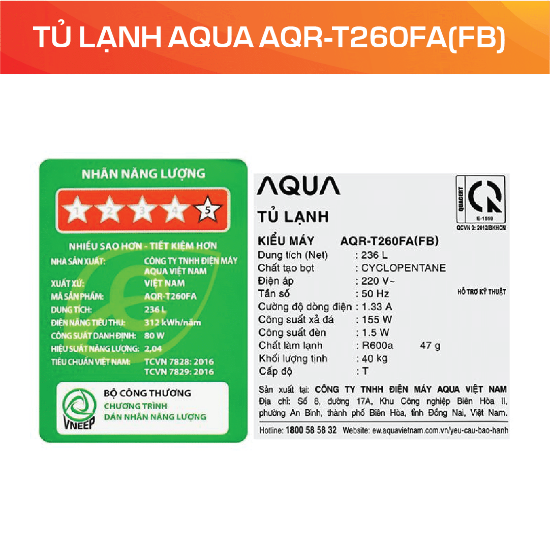 TỦ LẠNH AQUA AQR-T260FA(FB)