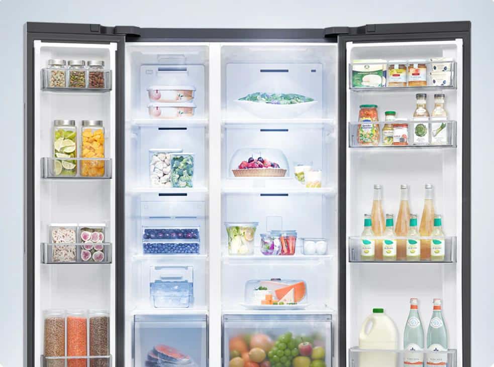 TỦ LẠNH SAMSUNG RS70F65Q3TSV là tủ Side-by-Side với hai cánh rộng, giúp phân loại ngăn mát và ngăn đông rõ rệt. Thiết kế này rất thuận tiện để truy cập các loại thực phẩm đa dạng mà không cần mở toàn bộ tủ, giảm thất thoát hơi lạnh.