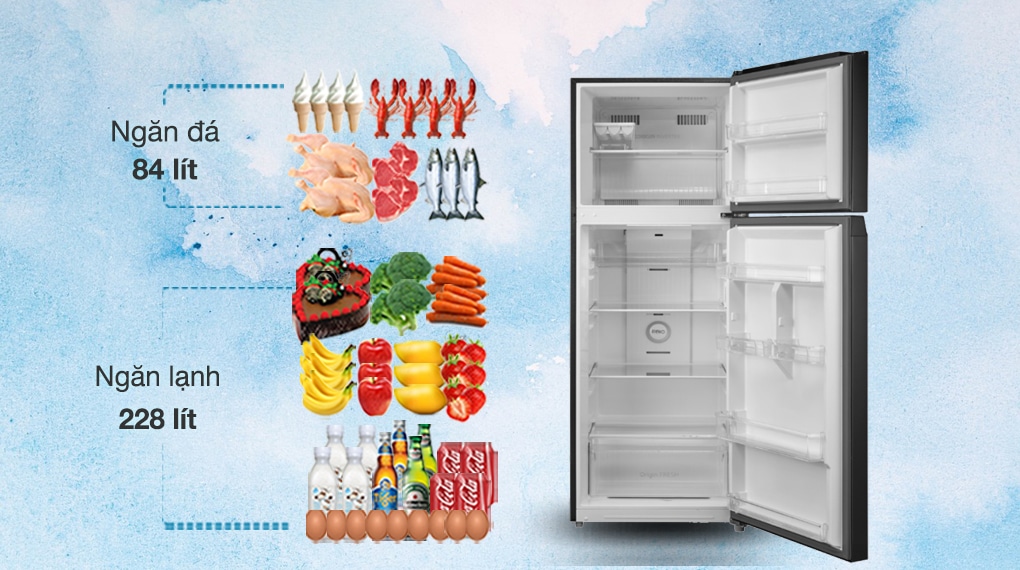 Dung tích 338 lít được chia đều cho ngăn mát và ngăn đá, mang đến sự tiện lợi tối đa: Ngăn mát rộng rãi: Lưu trữ rau củ, trái cây và các loại thực phẩm tươi. Ngăn đá ấn tượng: Thích hợp để bảo quản thịt cá đông lạnh, làm đá hoặc lưu trữ thực phẩm dài ngày. Bên trong, các khay kính chịu lực giúp bạn dễ dàng sắp xếp thực phẩm, chịu được trọng lượng lớn mà không lo nứt vỡ. Ngăn rau củ có khả năng giữ ẩm tốt, giúp rau quả luôn giòn và tươi ngon.