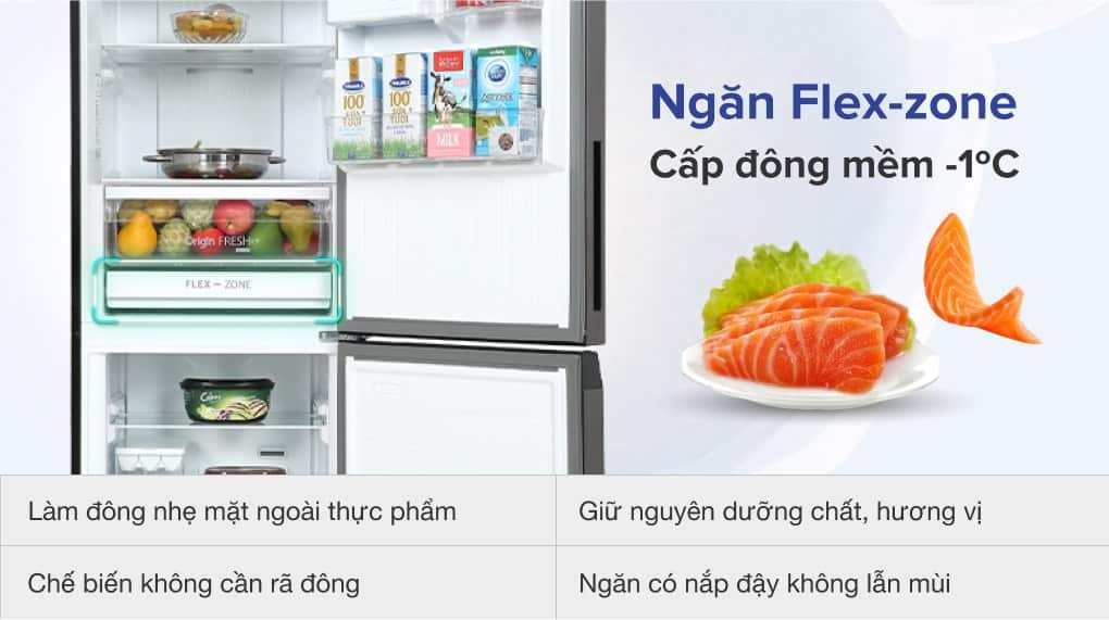 - Ngăn đông mềm Flex-zone tiện lợi, không cần rã đông