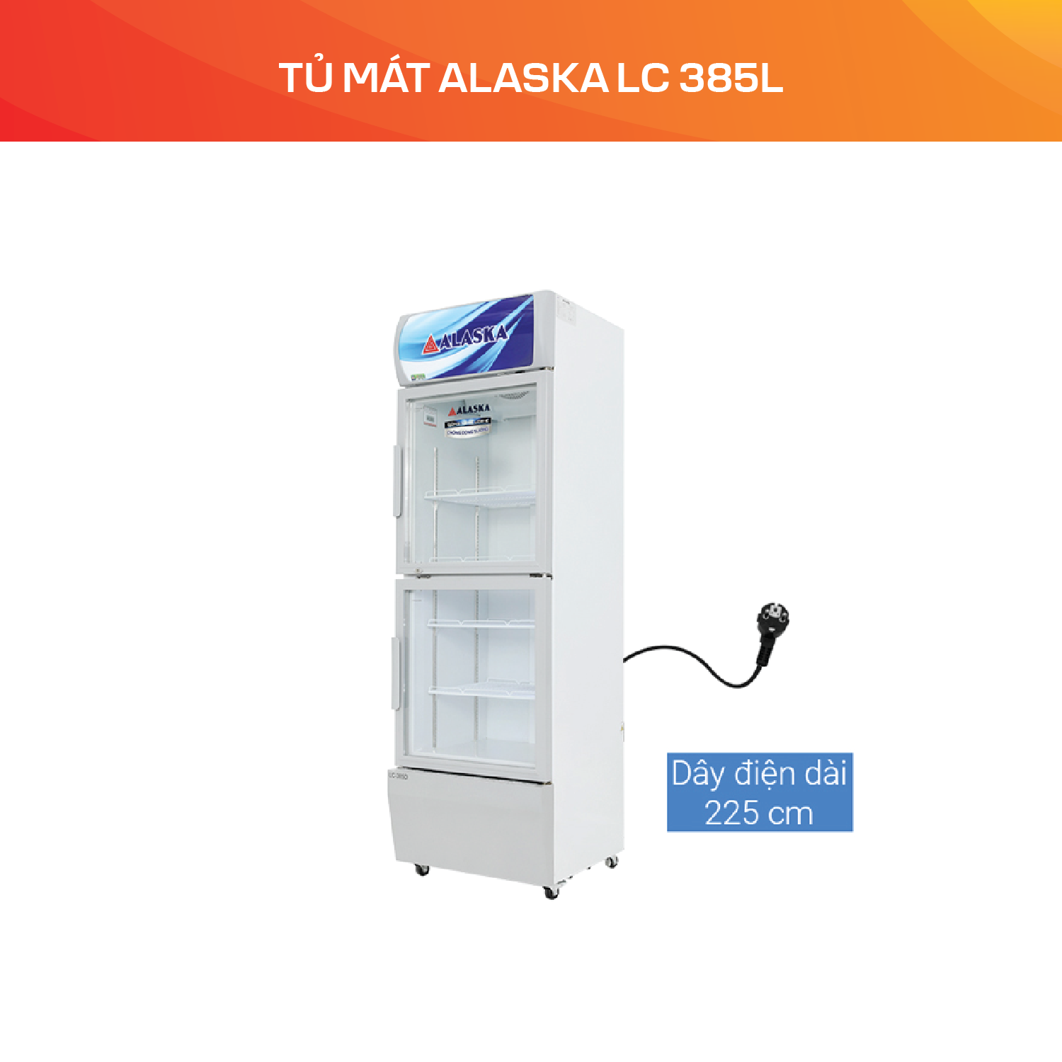 Dưới đây là các thông số kỹ thuật quan trọng của tủ mát Alaska LC 385L: